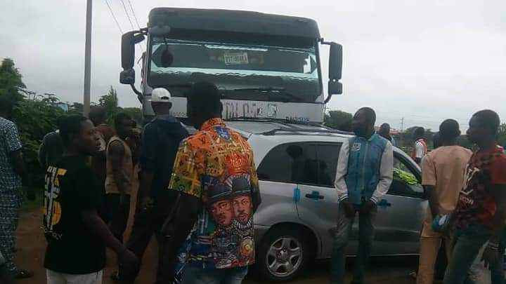 4 persons escape death as Dangote truck crushes car in Ilorin
