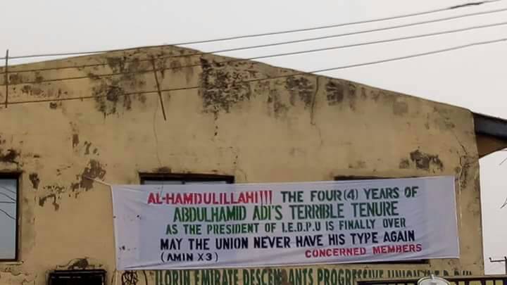 Some unidentified members of the Ilorin Emirate Descendant Progressive Union IEDPU have expressed happiness over the lapse in tenure of the national president, Alhaji Abdulhamid Adi.