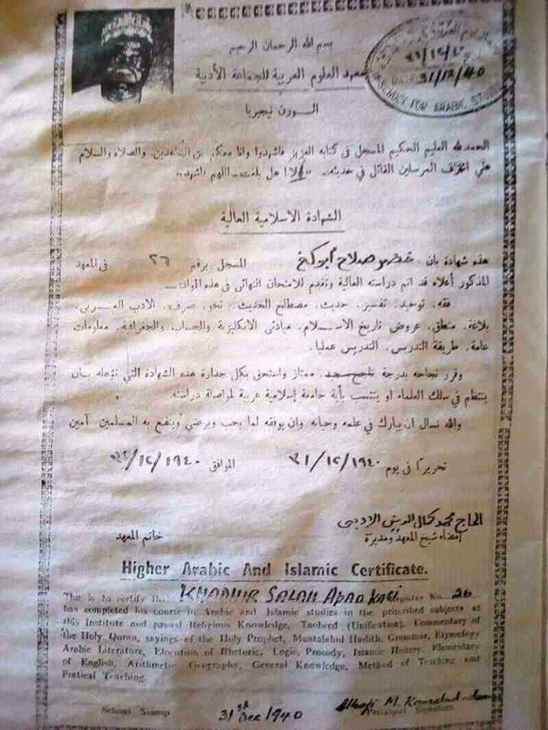 While responding to another claim on the products of Sheikh Kamalud-deen, he said, “They includes Shaykh Abdus Salam Sharafud-deen Agaka, Shaykh ya’qub Alawo, Imam Bashir, Alhaji Yahaya Olayinka and Alhaji Yahaya Salahud-deen among the first batch of students. Notable among the second batch of students are Alhaji Is’haq Ibrahim Onireke, Mallam Fasasi Epe and Mallam Sofiyyu’-Lahi Muhammed al-Jami’ (son of Late Shaykh Taj al-adab). Other batches include Alhaji Musa Alfanla Al-Adaby, Alhaji Abdur Rahman Salaud-deen Al-Adabiy, Alhaji Musa Alfanla Al-Adaby, Late Alhaji Muhammad Jamiu Gold, Alhaji ‘Alli Olukade and Alhaji Khidir Salahu-deen Apaokagi al-Adabiy, who joined in 1928 and was issued a certificate upon graduation in 1940 which was unprecedented in the whole of Yorubaland at that time.”