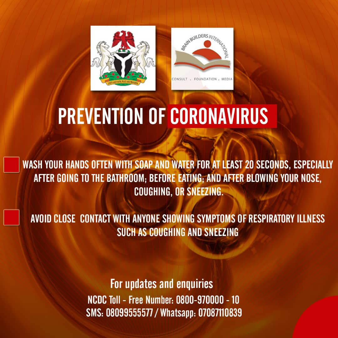Following the confirmation of 5 new coronavirus cases in Nigeria, the Brain Builders Initiative has called on state governments and stakeholders to make sure all hands are on deck in tackling the virus which the World Health Organization-WHO now declared a “pandemic”.