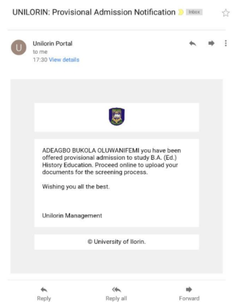 Breaking! UNILORIN RELEASES ADMISSION LIST.