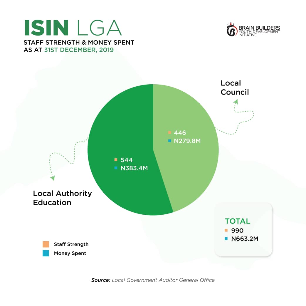 Recent studies by Brain Builders Youth Development Initiative (BBYDI) have shown that aside from that significant proportion of the local council staff has no specific job doing or to say any major role-playing in their field, the overall number of staff could not be properly financed considering the limited resources at the reach of the state government.