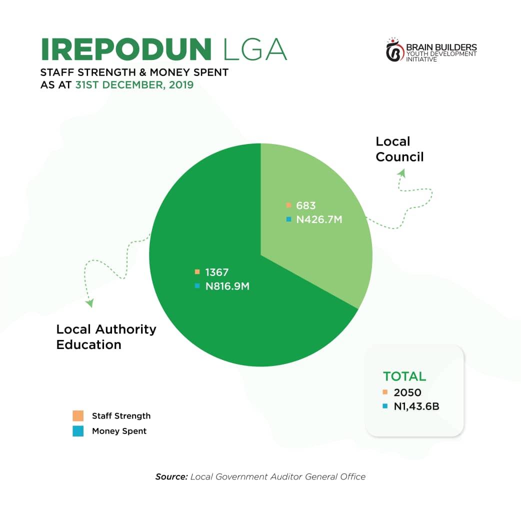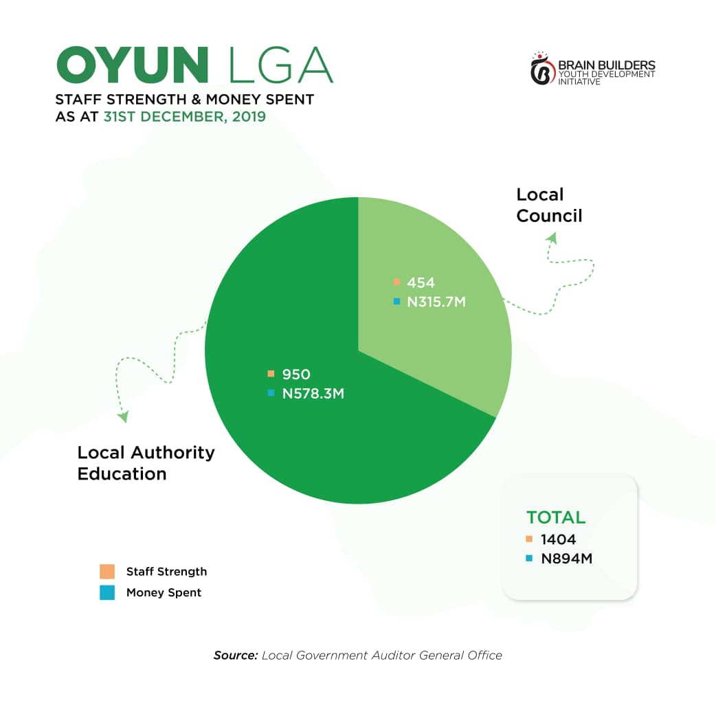 Recent studies by Brain Builders Youth Development Initiative (BBYDI) have shown that aside from that significant proportion of the local council staff has no specific job doing or to say any major role-playing in their field, the overall number of staff could not be properly financed considering the limited resources at the reach of the state government.