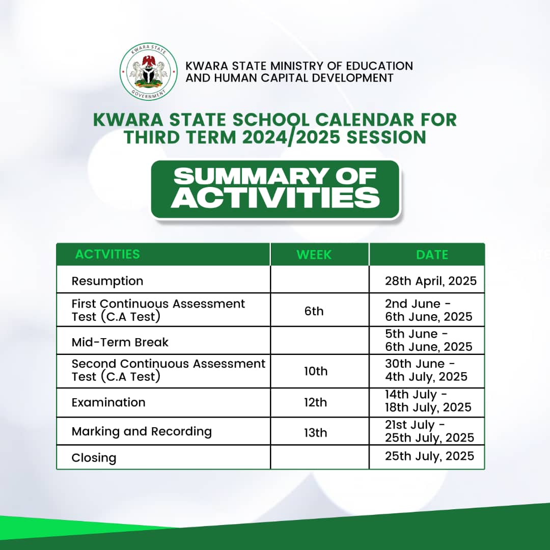 Dr. Olohungbebe further urged all teachers to adhere strictly to the academic calendar and comply with existing educational guidelines set by the ministry, assuring that the administration of Governor AbdulRahman AbdulRazaq remains focused on delivering transformative reforms in the education sector.