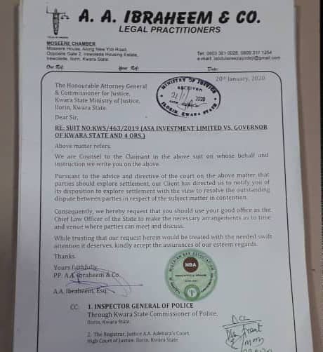 “Consequently, we hereby request that you should use your good office as the Chief Law Officer of the State to make the necessary arrangements as to time and venue where parties can meet and discuss.