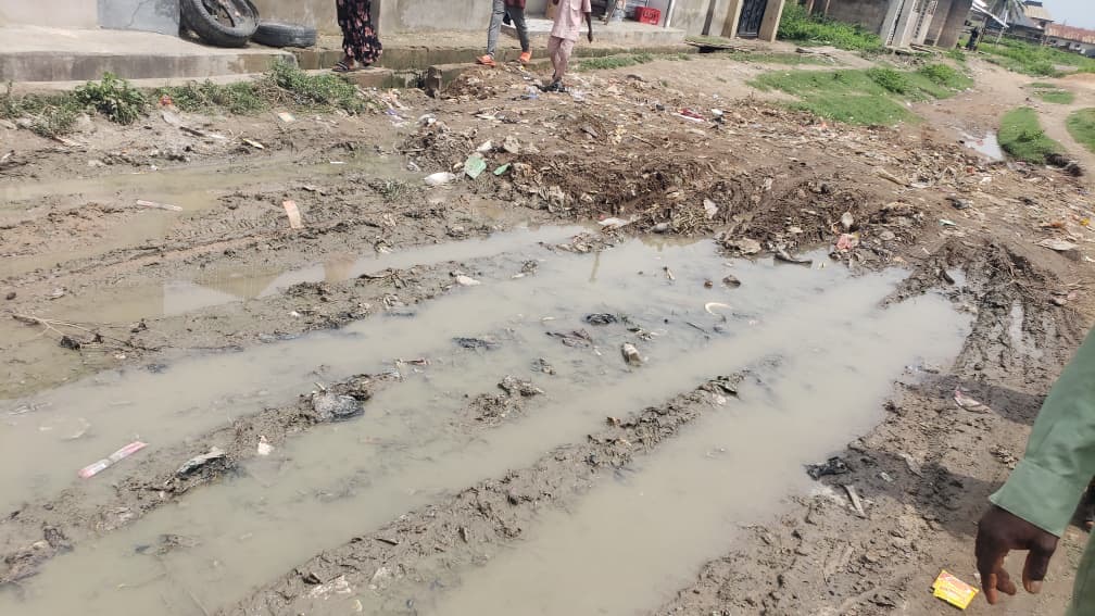 Alhaji AbdulRahman Ibrahim, the community’s organizing secretary, explained how recurring floods wash away their makeshift repairs. “We try to block the flood with sand and stones, but it doesn’t hold. More potholes appear after every rainfall,” he said. “Many houses are already flooded.”