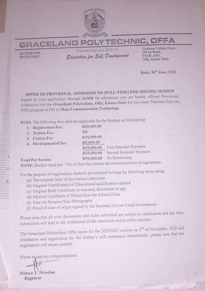 Between late 2020 and early 2021, prospective students seeking admission into Graceland Polytechnic Offa (GPO) were assured that the courses were “fully accredited.”