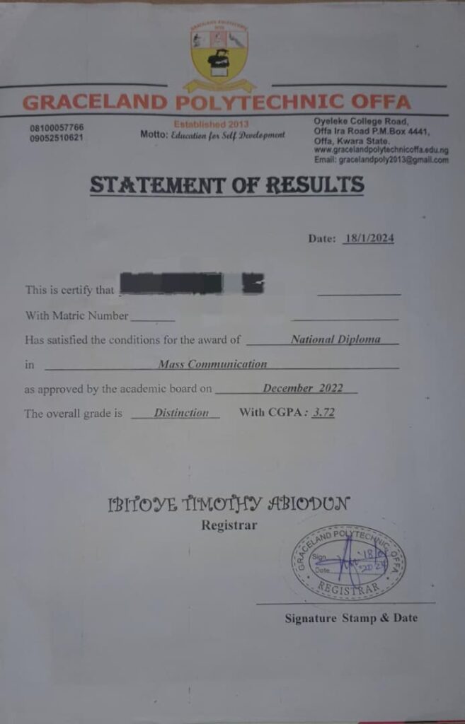 After graduating with a Distinction (CGPA 3.70) from Mass Communication at Graceland Polytechnic Offa in 2022, Ibrahim (not his real name) believed, just like thousands of students every year, that the road to a Higher National Diploma (HND) or a Direct Entry (DE) admission into the university would be a normal step ahead.