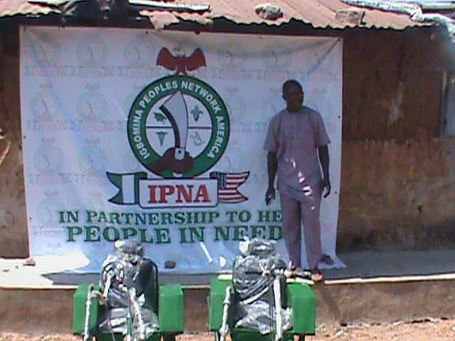 The Igbomina Project Network America (IPNA), has donated some mobility equipments to a family of three living with disabilities at Oyate Oro-Ago in Kwara State.