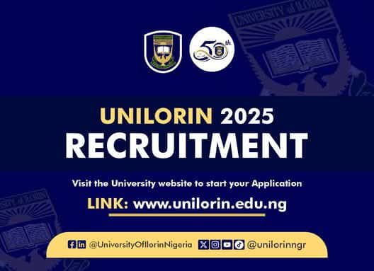 The University of Ilorin has begun its 2025 recruitment exercise. The university made the announcement on Monday morning through its official media handles.