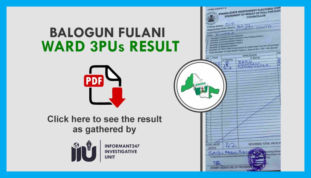Similarly, for Balogun Fulani Ward 3 of Ilorin South Local Government Area, through our team’s month-long efforts, we gathered result sheets from all 17 polling units in the ward.