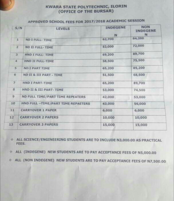 He said , “ “As a non-indigene of the state, I paid the sum of N32,090 as a new intake last year but I am surprised with the N75,500 being quoted on the school’s portal for the 2017/18 academic session.”