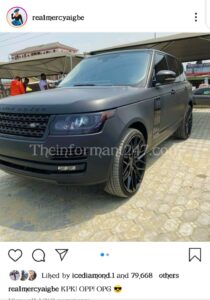 She wrote: “Today I gifted my yummy brand ambassador @realmercyaigbe a sxy RANGE ROVER HSE …..Thank u for all you do @realmercyaigbe thank you for being a lovely person to work with… I hope you love your post birthday / early valentine gift from me.”