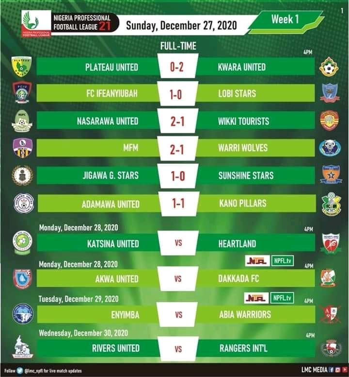 With this win, Kwara United has occupied the top of the log with three points and two goals from one match played.
