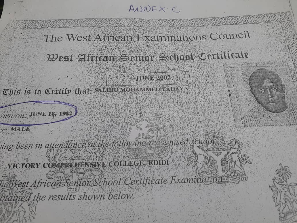 He added that, “The candidate provided June 18th 1982 as his date of birth in his WAEC result (Annex C) without any court affidavit refuting the contradictions. These are obvious false information which amount to criminal act in the “Electoral Act As amended) 2010”.