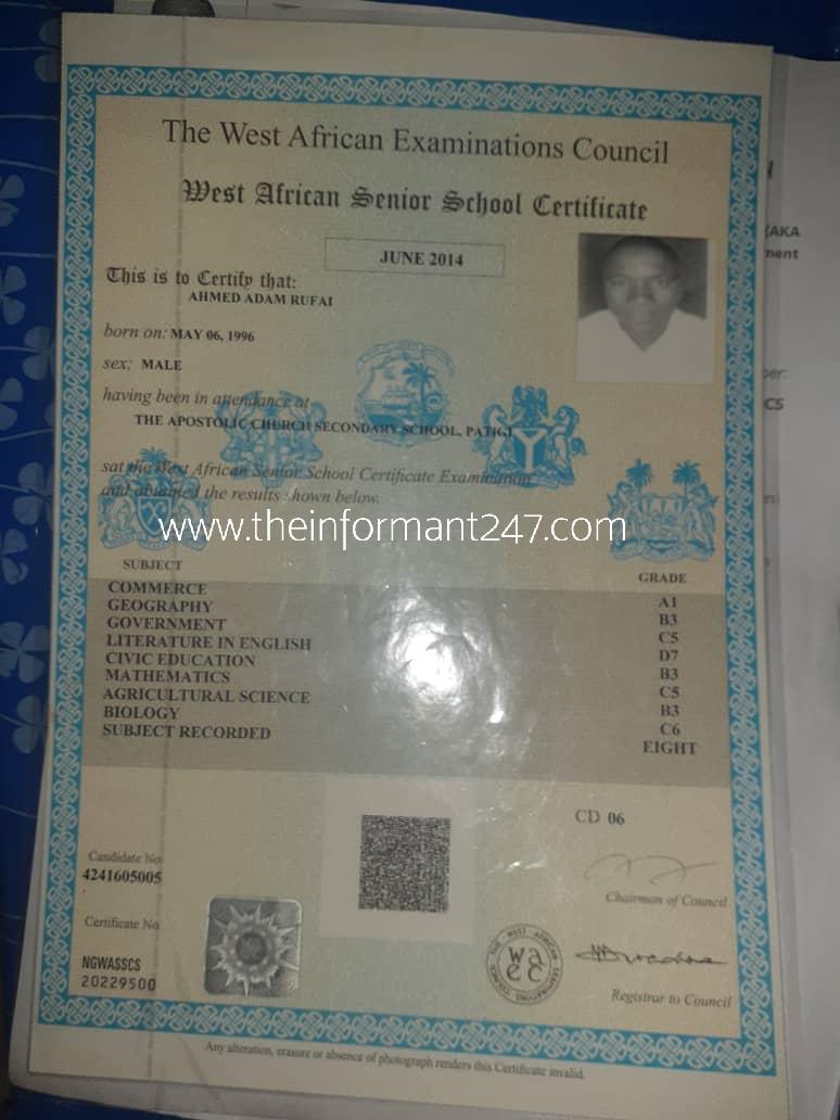 Reports on social media alleged that Rufai submitted a fake WAEC (West Africa Examination Council) result certificate citing discrepancies in the date of birth captured on the document.